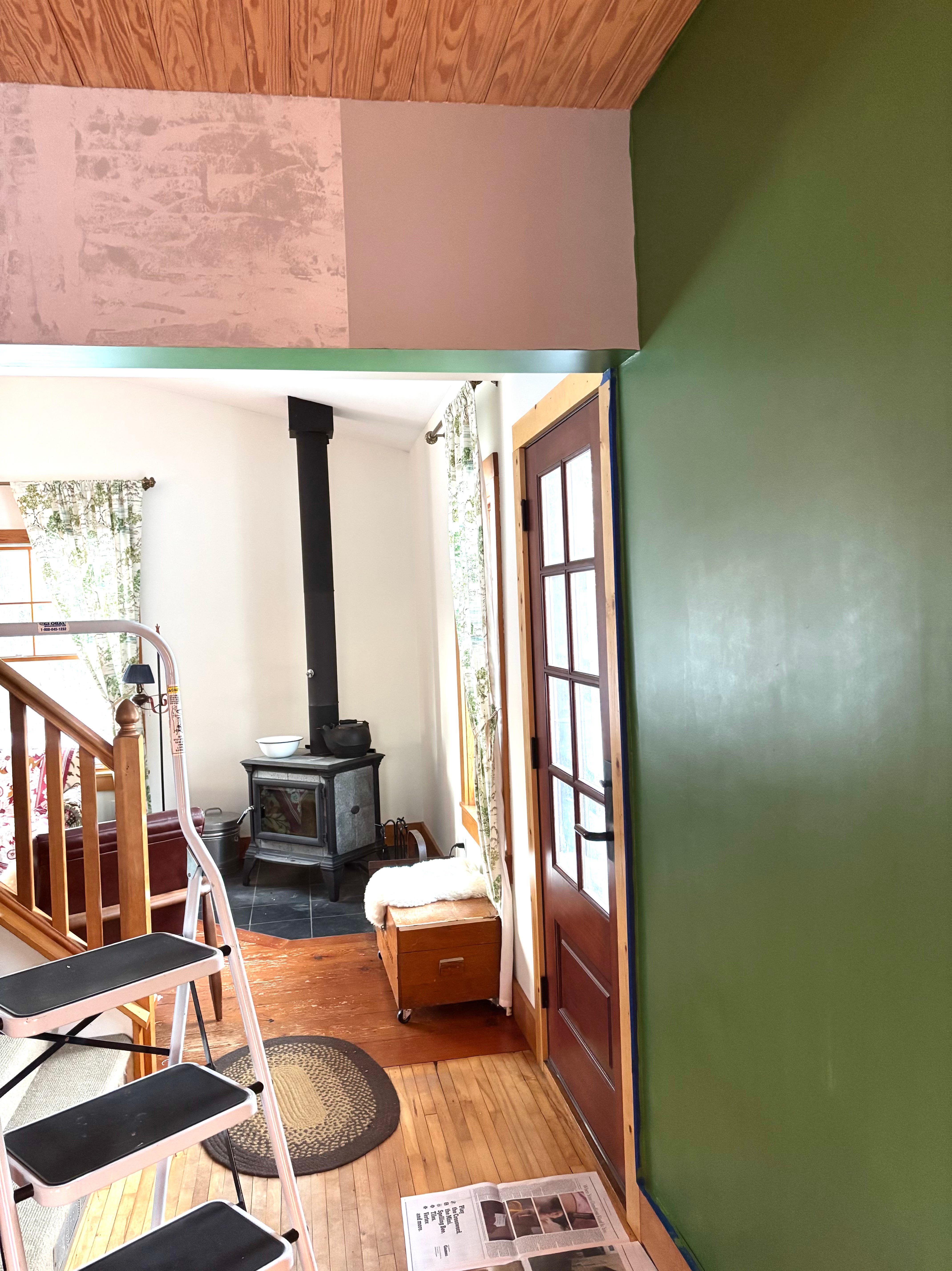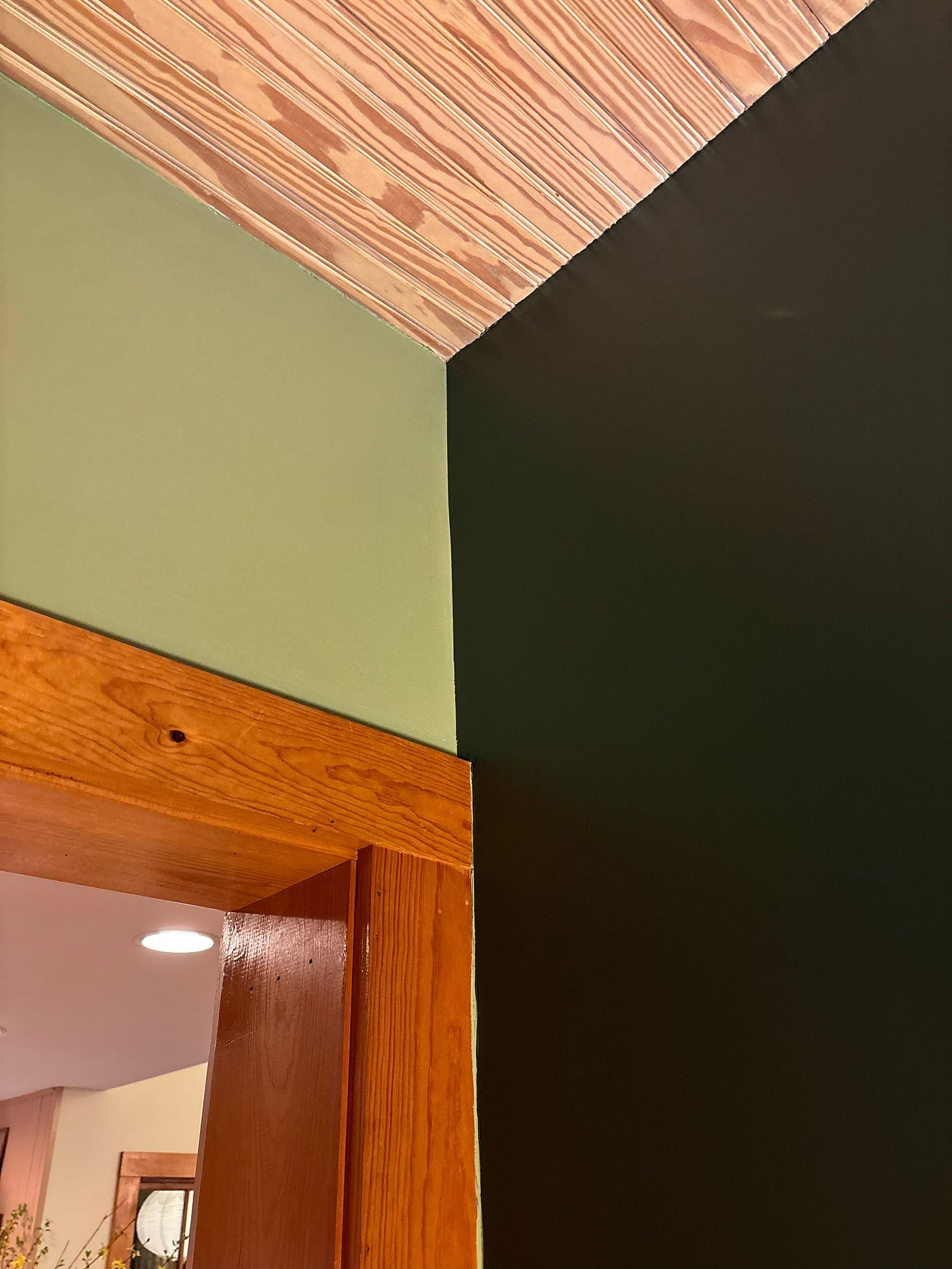 Did you do the ceiling yourselves? I love it!!! The new color is gorgeous. Can't wait to hear where the dark green went.